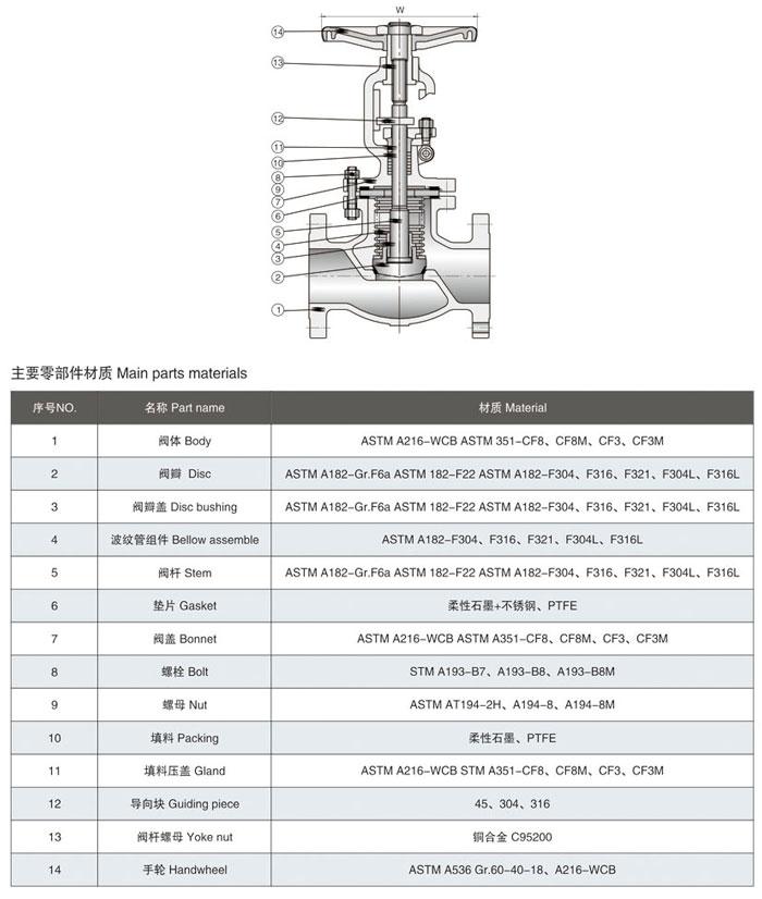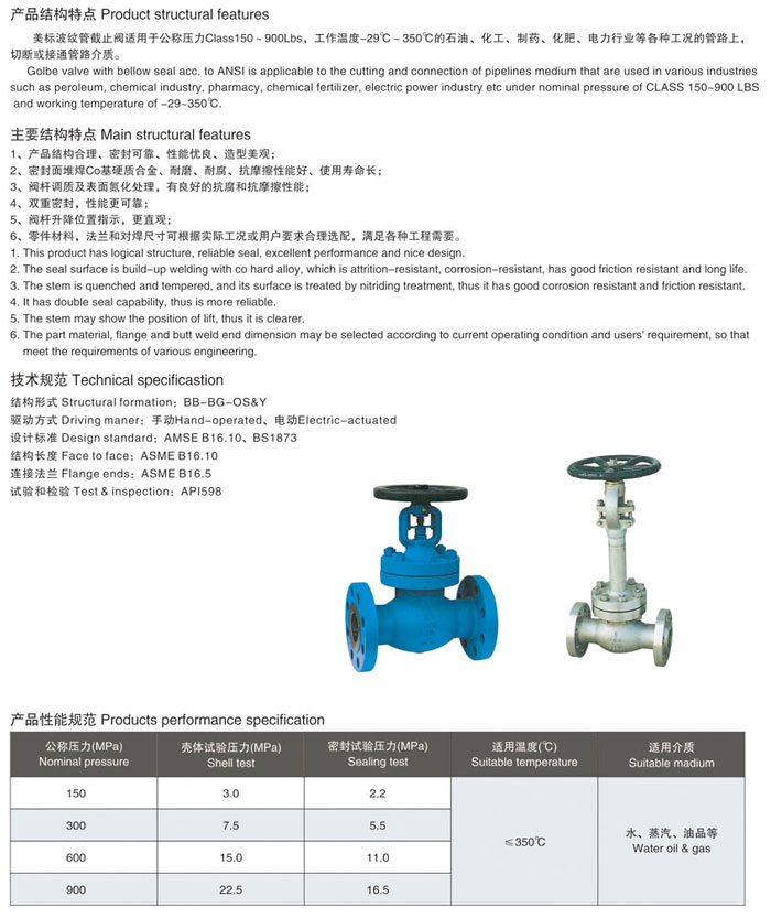 美标波纹管截止阀 Globe valve with bellow seal acc. to ANSI