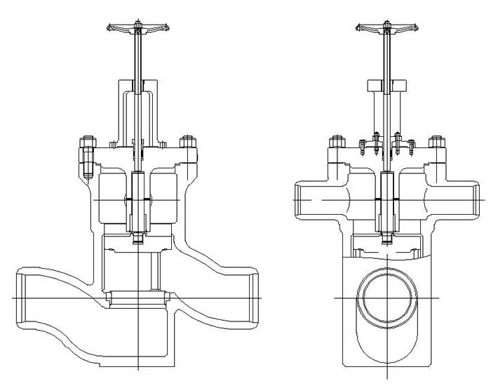 高加进出口四通阀(H62Y、高加出口止回阀)结构示意图