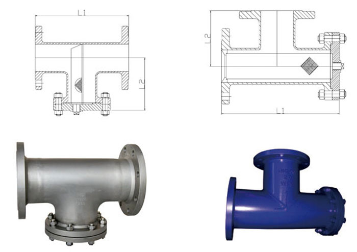 产品特点:T型过滤器是除去液体中少量固体颗粒的小型设备,可保护设备的正常工作,当流体进入置有一定规格滤网的滤筒
